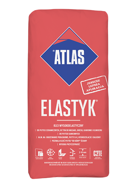 – szeroki obszar zastosowania – dzięki użyciu dodatków wiążących, klej ATLAS ELASTYK posiada wysoką przyczepność do różnych rodzajów płytek (także dużego formatu) i podłoży,