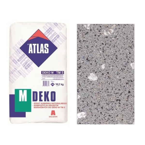 Kruszywo ATLAS Bazalt 05 to barwiony składnik dekoracyjny przeznaczony do wykonywania tynków mozaikowych w systemie ATLAS DEKO M. Produkt tworzy efekt naturalnego kamienia o charakterystycznej, wielokolorowej strukturze inspirowanej bazaltem. Stosowany w połączeniu z bazą tynkarską pozwala uzyskać trwałą, estetyczną i odporną na zabrudzenia powierzchnię ścian, zarówno wewnątrz, jak i na zewnątrz budynków.