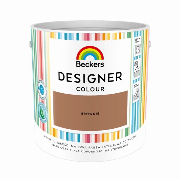 Beckers Designer Brownie 2,5L to wysokiej jakości farba dekoracyjna, która pozwala uzyskać ciepły, głęboki odcień brązu. Kolor Brownie wprowadza do wnętrz przytulność, elegancję i harmonijną atmosferę. Produkt sprawdza się zarówno w mieszkaniach, jak i w przestrzeniach komercyjnych, ponieważ łączy estetykę, trwałość oraz łatwość aplikacji.