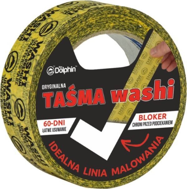Taśma malarska Washi marki Blue Dolphin przeznaczona do precyzyjnego maskowania powierzchni podczas prac malarskich i wykończeniowych. Wykonana z cienkiego papieru Washi, umożliwia uzyskanie czystych, równych odcięć kolorów i estetyczne wykończenie krawędzi. Sprawdza się przy pracach wymagających wysokiej dokładności, zarówno w zastosowaniach profesjonalnych, jak i remontowych. Taśma dobrze przylega do podłoża, a po usunięciu nie pozostawia śladów kleju na powierzchni.