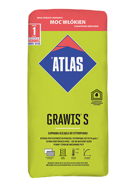 ATLAS GRAWIS S to wysokiej jakości zaprawa klejąca do styropianu EPS, zarówno białego, jak i grafitowego.