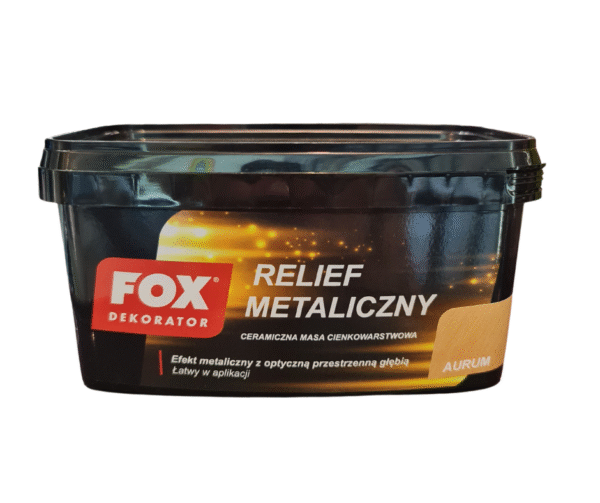 Fox Relief Metaliczny 1 kg to dekoracyjna masa strukturalna do wnętrz, która pozwala uzyskać efekt metaliczny z subtelną głębią i połyskiem. Produkt jest gotowy do użycia i przeznaczony do cienkowarstwowych wykończeń ścian i sufitów w pomieszczeniach mieszkalnych. Dzięki ceramicznej formule tworzy trwałą powłokę dekoracyjną, która zachowuje intensywność koloru i metaliczny połysk po wyschnięciu. Relief Metaliczny dobrze współpracuje z narzędziami takimi jak paca do zacierania i pozwala tworzyć różne wzory oraz faktury, co daje przestrzenny, efektowny wygląd ścian.