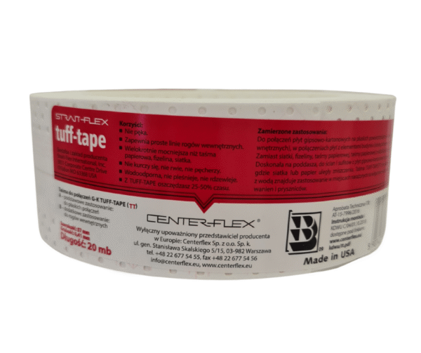 Taśma TUFF-TAPE to profesjonalna amerykańska taśma wzmacniająca przeznaczona do spoinowania płyt gipsowo-kartonowych.